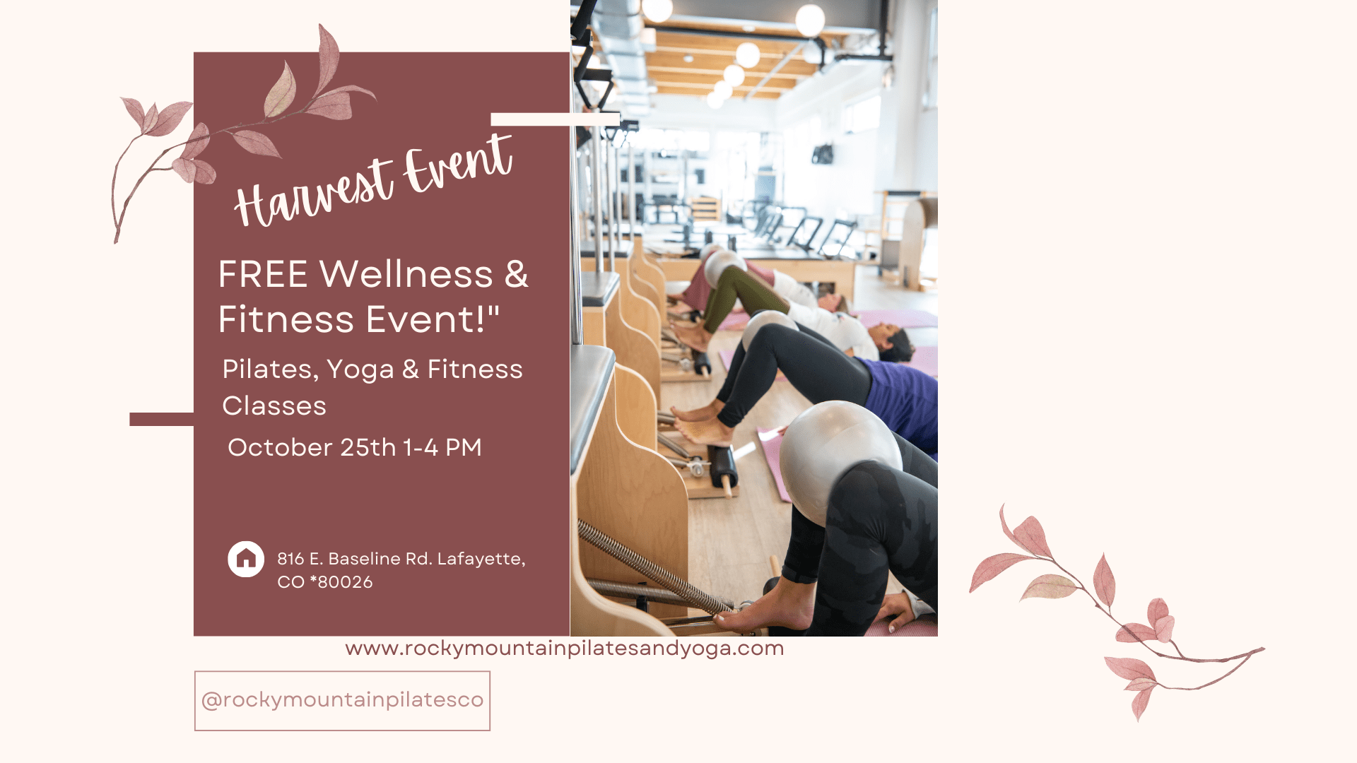 Join us for an afternoon of FREE wellness & fitness classes at Rocky Mountain Pilates & Yoga!